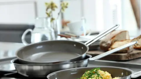 Skønt pandesæt i 85% genanvendt stål og med keramisk belægning.