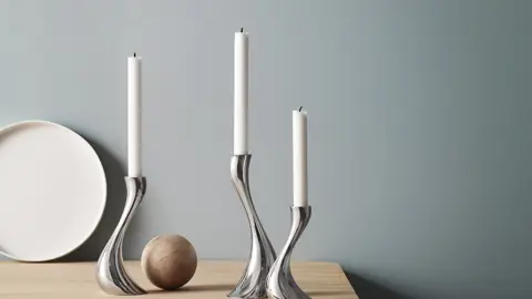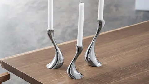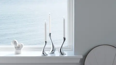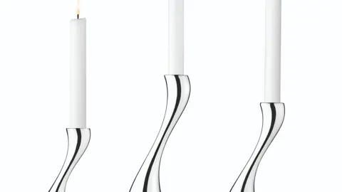 Lad hjemmet få et strejf af ren magi med det ikoniske Cobra lysestagesæt fra Georg Jensen. Den bugtede S-form og de spejlblanke overflader gør stagerne til et ægte blikfang – især når flammernes skær danser i stålet.