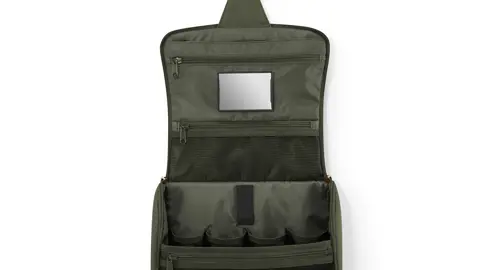 En rummelig og smart toilettaske fra Reisenthel med masser af organiseringsmuligheder. Den kan hænges op, så du får fuldt overblik, og spejlet kan tages af og sættes fast med velcro. Ideel til både ferier, weekendture og hverdagens behov.