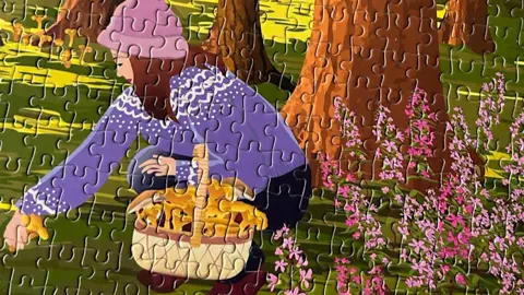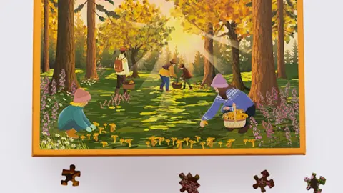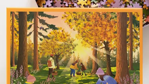 Tag med på efterårstur i skoven, hvor solen kaster sine sidste stråler gennem trækronerne, og kurvene fyldes med guldgule kantareller. Puslespillet indfanger hyggen ved sanketure, nærværet med familien og glæden ved naturens ro.